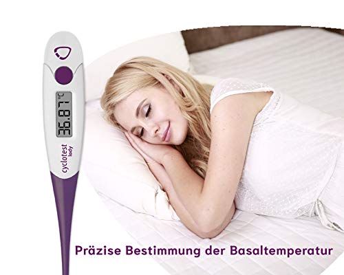 Is de BTS-thermometer verlicht? Nee, toch kan het worden gebruikt voor de NFP-methoden, (de symptothermische methode of temperatuurmethode) bij KiWu. Met NFP kinderwens voldoen? Volgens de NFP-regeling moet een basaltemperatuurtracker zoals de cyclotest lady basalthermometer twee nakomstpunten weergeven om zo de kleine schommelingen van de waktemperatuur te kunnen bepalen. Deze helpt door het bepalen van de eisprong en de vruchtbaarheid binnen een cyclus bij de zwanger te worden. De cyclotest basalthermometer is een NFP-basalthermometer, een zogenaamde vrouwenthermometer, met een flexibele meetpunt. Zo maakt het kinderwenshulpmiddel een orale, vaginale of anale meting bij de cyclus tracking mogelijk. De NFP-blok of NFP-cycluskalender voor 6 maanden met potlood en hygiënebox in een praktisch etui vergemakkelijkt de cyclus tracking en is een voordelig alternatief voor de productiefaciliteitsmonitoren of vruchtbaarheidsmonitoren of preventiecomputer voor vrouwen. De cyclusbladen kunnen als menstruatiekalender worden gebruikt en dienen voor de cyclusbewaking. De vruchtbare dagen bepalen en doelgericht geslachtsverkeer op deze dagen kan de ontvangst bevorderen. Meet met de NFP-thermometer de basaltemperatuur en de ijpring te bepalen is een hulpmiddel voor het zwanger worden.