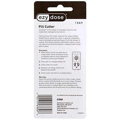 Specification: EZY DOSE 67856 Pillensnijder met Veiligheidsschild, snijdt pillen, vitaminen, tabletten, roestvrijstalen mes…