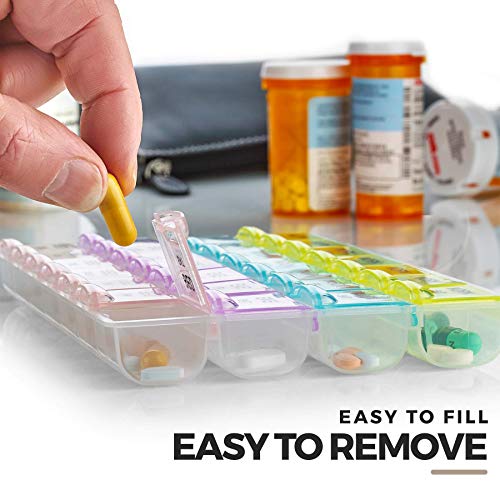 MIS NOOIT EEN DOSERING: Het probleem met andere dagelijkse pillen opbergers is dat je niet kunt zien wat er in zit. Onze pillenpot lost dat probleem op! Waarom? Dat komt omdat onze medicatie organizer is gemaakt met behulp van aparte en doorschijnende deksels. Omdat we onze Weekly Pill Organizer op deze unieke manier maken, betekent dit dat het gemakkelijk is om te zien of u uw dagelijkse dosis heeft genomen.