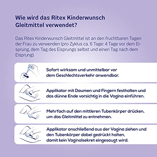 Ritex glijmiddel voor kinderen ondersteunt bij de natuurlijke ontvangst. Het is een medisch hulpmiddel voor gebruik in de vaginale sector, om paren met kinderwens bij de natuurlijke ontvangststgelegenheid te ondersteunen. Met zijn uitstekende glijeigenschappen compenseert het gebrek aan vaginale vochtigheid (veroorzaakt bijvoorbeeld door stress, het innemen van medicijnen enz.). De meeste in de handel verkrijgbare glijmiddelen zijn ingesteld op de vaginale pH-waarde van niet-vruchtbare dagen (4,5) en met conserveringsmiddelen verspringend. Een dergelijke omgeving is hinderlijk of zelfs dodelijk, waardoor deze glijmiddelen niet geschikt zijn voor gebruik bij kinderwensen. Klinische in-vitro studies hebben aangetoond dat het Ritex kinderwens glijmiddel bij spermieën belangrijke eigenschappen voor een succesvolle ontvangst zoals motiliteit, vitaliteit, morfologie en integriteit van DNS zeer goed ontvangt.