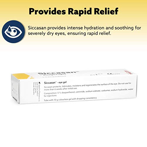 Siccasan is een bijzonder zachte en gladde ooggel die zich snel verspreidt over het oppervlak van het hoornvlies en het gevoel van vermoeide, droge of prikkende ogen snel tempert. De oogleden glijden over het hoornvlies en bindvlies zonder weerstand, terwijl de helende eigenschappen van dexpanthenol eventuele schade of abrasie op het hoornvlies genezen.