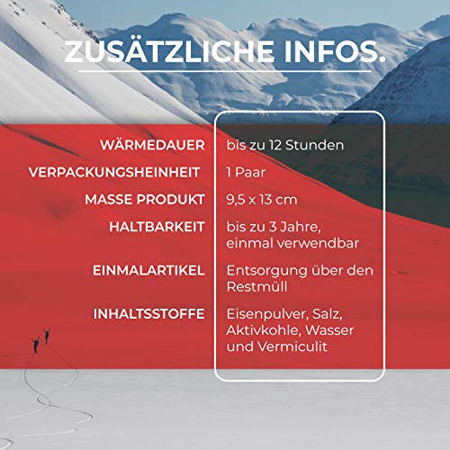 12 uur warmte: de warmtepacks zijn vanwege hun lange warmteduur bij het skiën en wandelen, op de jacht, bij carnaval, bij outdoorsport en bij bezoeken in stadion en kerstmarkt.
